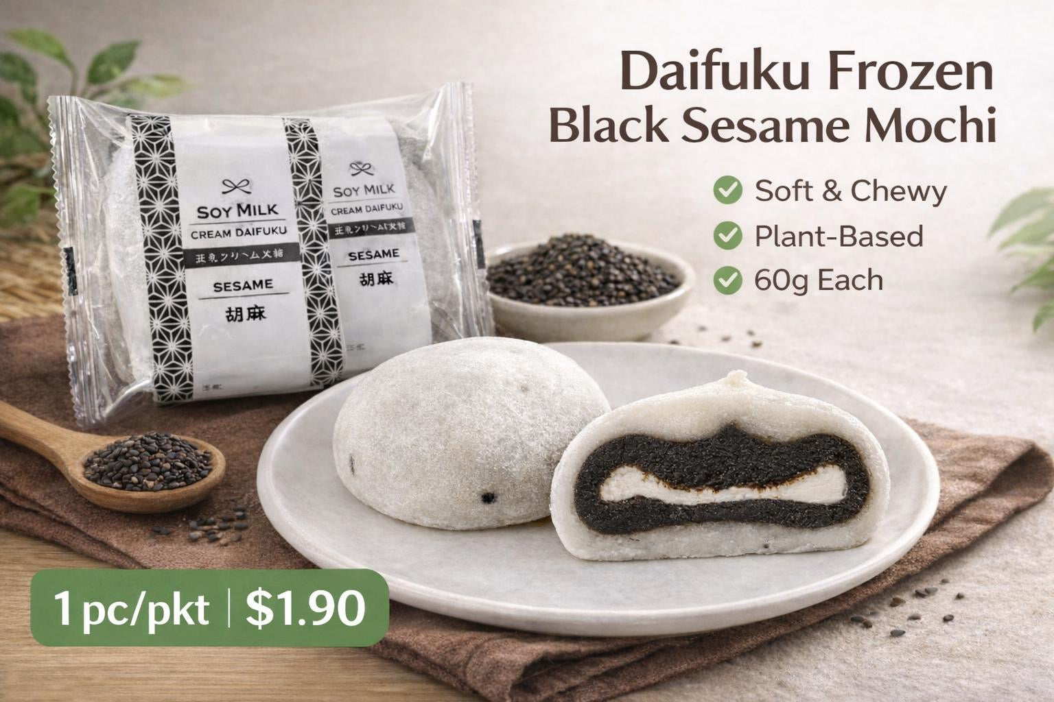 Daifuku Frozen Black Sesame Mochi 1pc/pkt (60g)