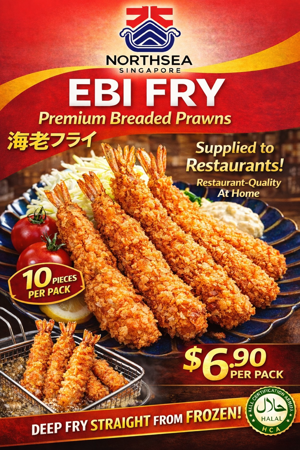 Enjoy crispy, golden-brown Ebi Fry as a delicious main dish or appetizer. These perfectly breaded shrimp are ready to deep-fry straight from frozen, delivering a satisfying crunch with every bite. Pair them with tartar sauce, mayonnaise, or your favorite dip for an irresistible seafood treat.